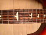 Crafted with a figured maple top and a solid mahogany back, this guitar has a punchy, balanced voice that sings with every nuance of your playing. The 22-fret, 25" scale Pattern Regular mahogany neck and rosewood fingerboard feel instantly familiar, while PRS's signature bird inlays and locking tuners add the perfect touch of class and reliability.