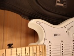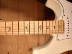 The Silver Sky comes with the option of a rosewood or maple fretboard. The maple fretboard option comes with the original 635JM neck shape, while the rosewood fretboard option has been subtly modified in the shoulders to feel more “rounded” in your hand. Both neck shapes were designed by researching vintage instruments and Mayer test-driving guitars on stage to find what felt right. The fretboard radius on both options is 7.25”.